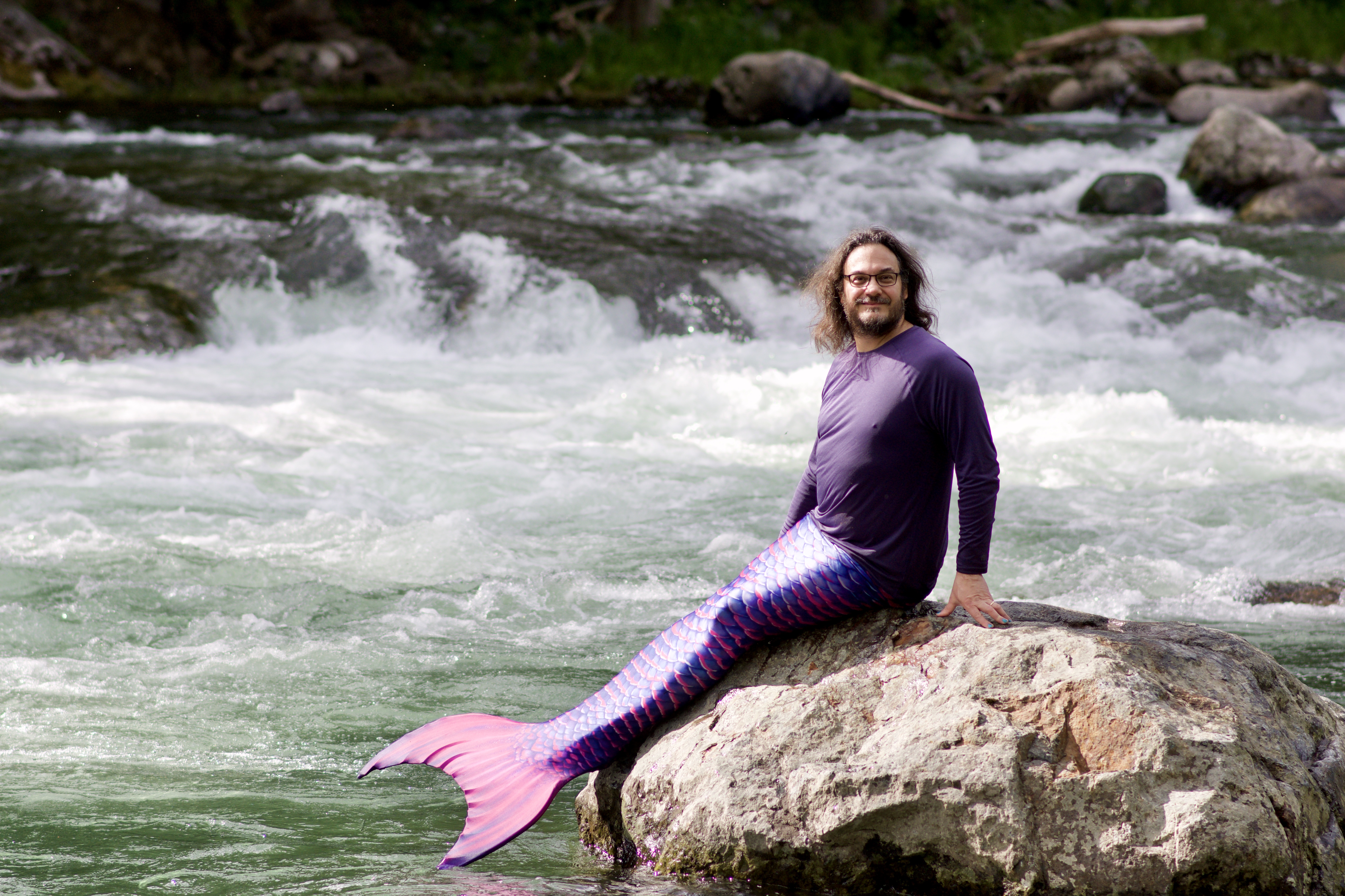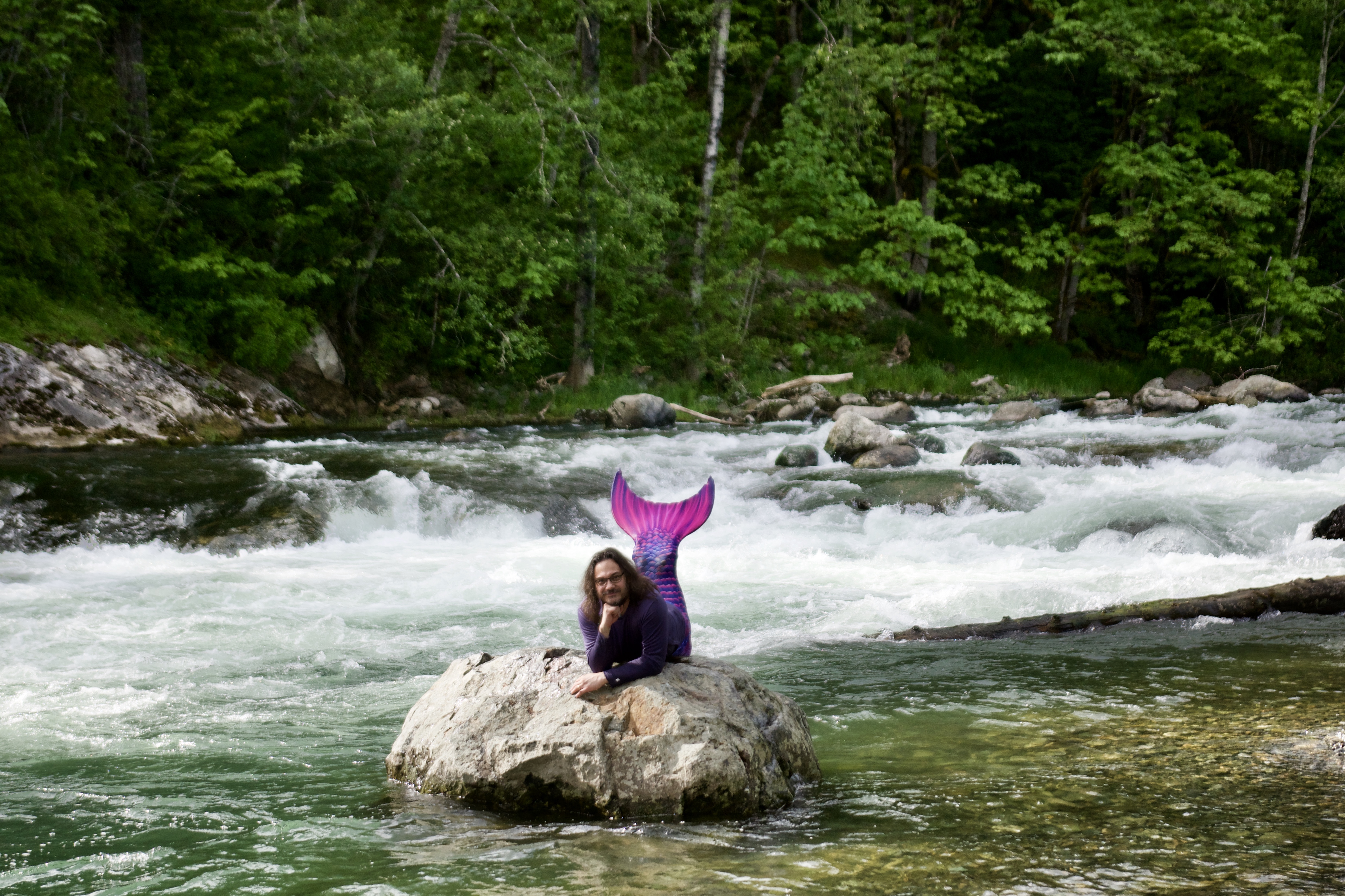Photos of Presence playing as a mermaid, May 15, 2020 at Kanaskat-Palmer State Park near Auburn, WA.