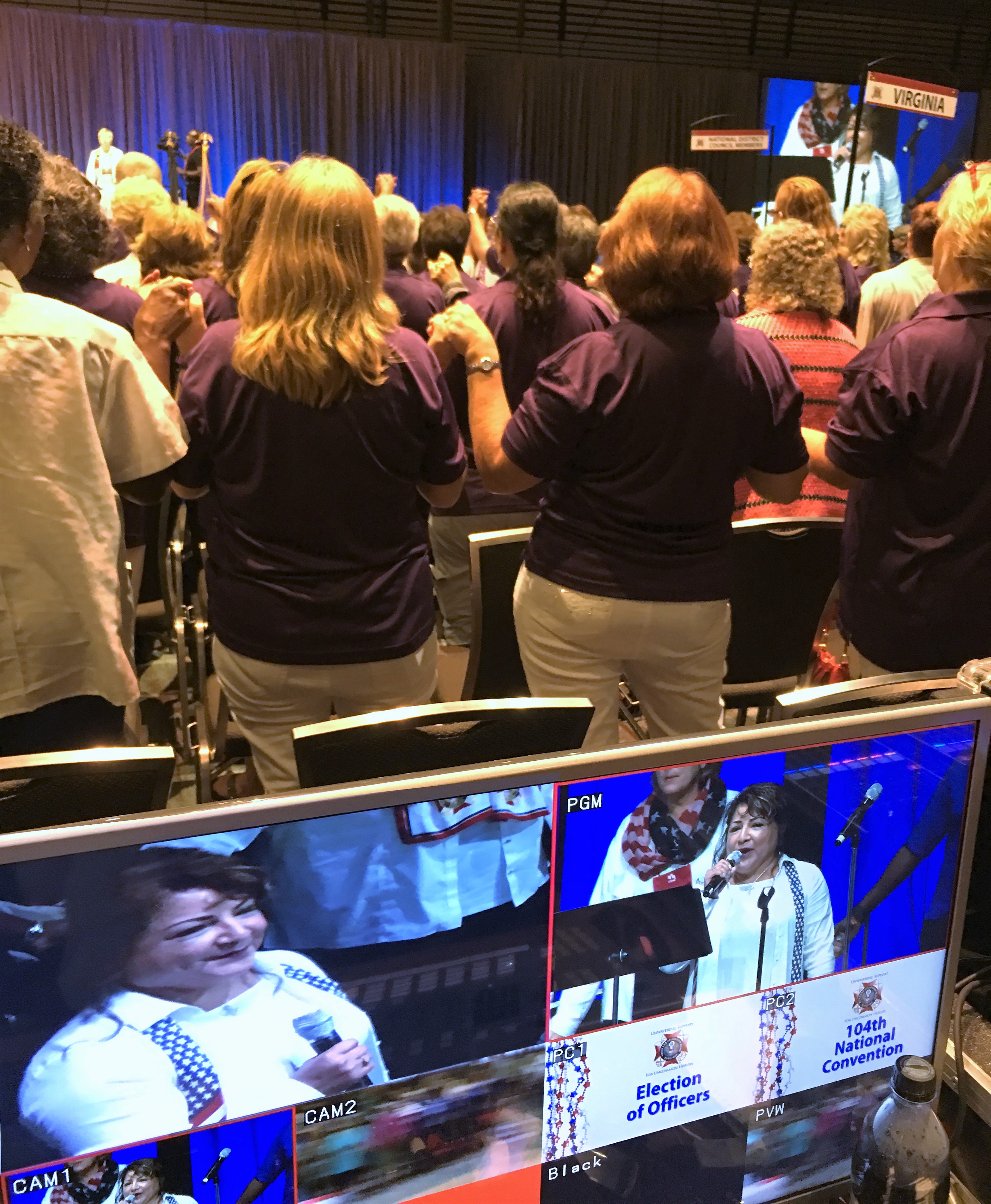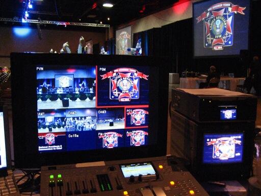 Paul assisted in the VFW Auxiliary's transition from standard-definition 4:3 video to HD 1080p 16x9 video, and from analog to digital. While some events have enjoyed three cameras, the majority of the live IMAG is two cameras, and Paul was able to make the most of both scenarios to engage the audience. Paul's Clearcom/intercom direction is detailed, clear, and decisive. Multiple AUX buses with two different PROGRAM feeds were trivial for Paul to operate, and for two years Paul has provided his own recording and video mixing equipment. Paul is adept at mixing in PowerPoint and video playback slides, even tweaking slide graphics to fix aspect ratios, fix fonts, and correct errors during the event. Love webcast streaming, recordings of the event, and post-event media management is all part of the VFW package.